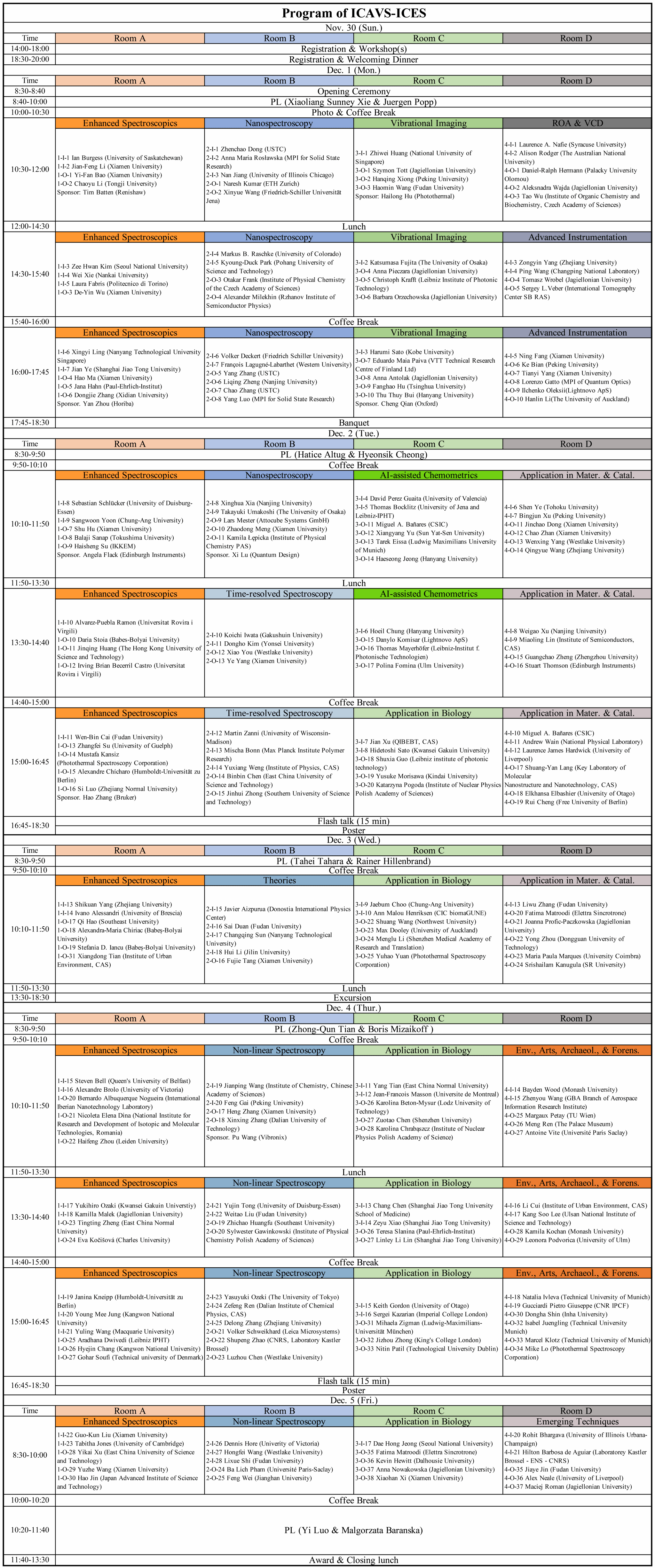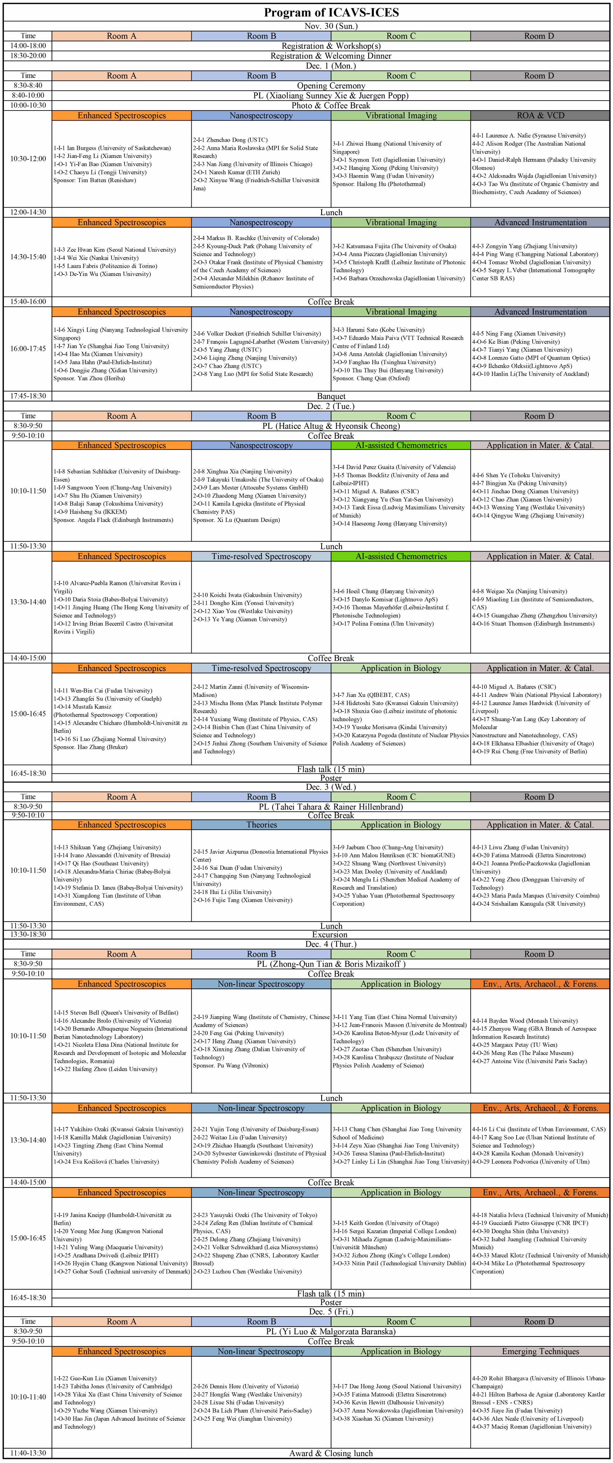 Please note that the time allocated for presentations is 20 min (including 5 min Q&A) for invited talks, and 15 min (including 3 min Q&A) for oral presentations.